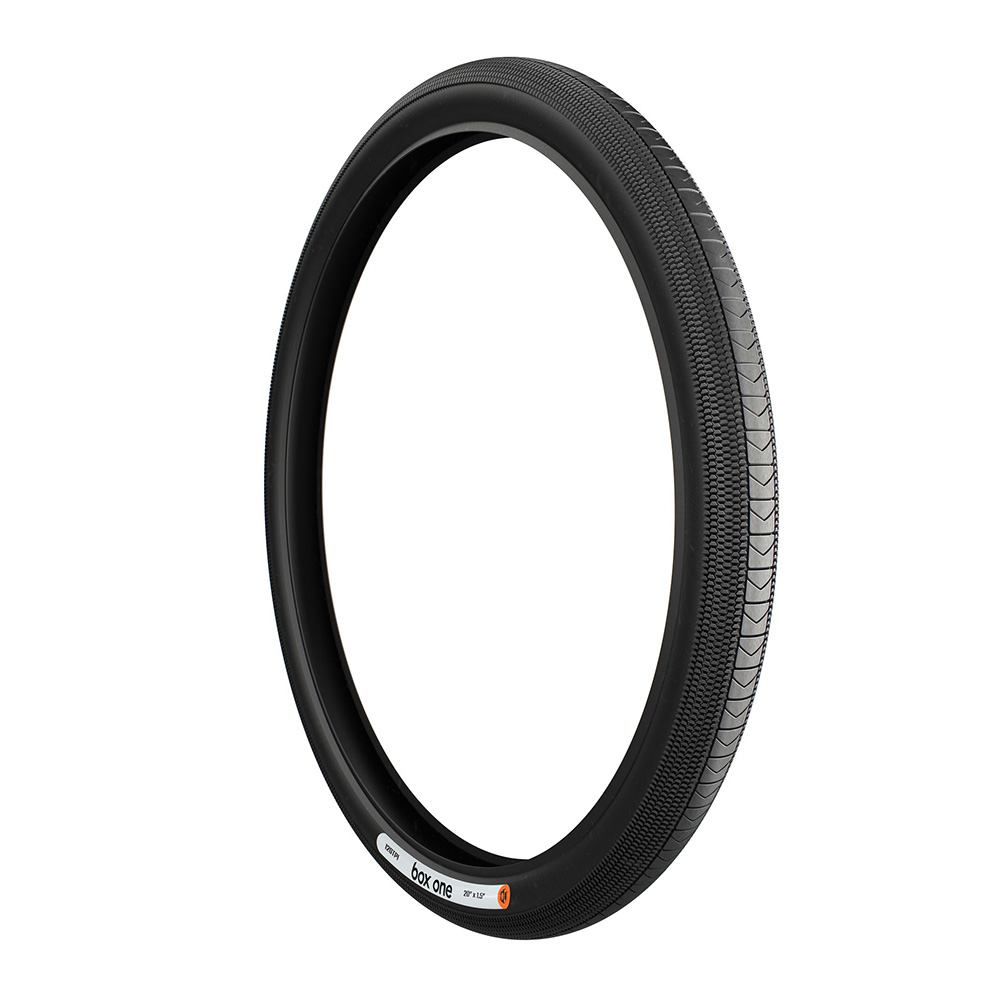 Box One™ 120 TPI Folding Tires were engineered with a minimalist approach to hit lofty goals for weight, traction, rolling resistance, and rebound. At its heart is a super-supple 120TPI casing where we forced in as much rubber displacing nylon as possible. Skin walls are employed to reduce drag and further reduce weight. We flanked the high-density casing with a tightly packed hoop of aramid fibres. Finally, we draped this all with BMX race-specific tread that transitions from a centre band with a large contact patch to unidirectional tactile knobbies on the sides. This aggressive combination allows for maximum traction out of the gate, immense adhesion in the corners, and low rolling resistance in the straights. A state-of-the-art mixture of compounds is used in various areas of the apex, wall, bead seat, and centre – with higher silica content in the tread to again remove more weight.