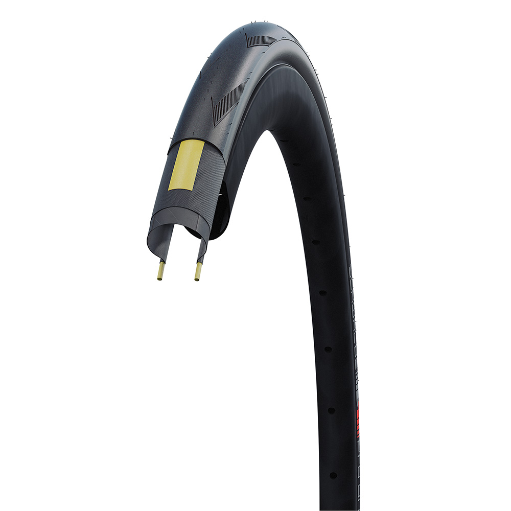 Tubeless Easy high-end road bike tyre. Combining “souplesse”, speed and control at the highest level. The best road bike tyre Schwalbe has ver developed.
