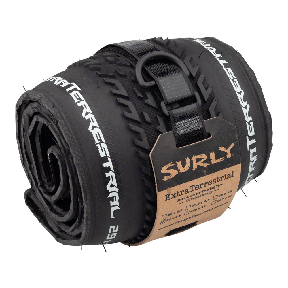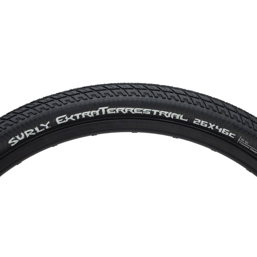 The ExtraTerrestrial is a 26 x 2.5" tyre with a very directional tread that offers a great balance between decreased rolling resistance and reliable traction.