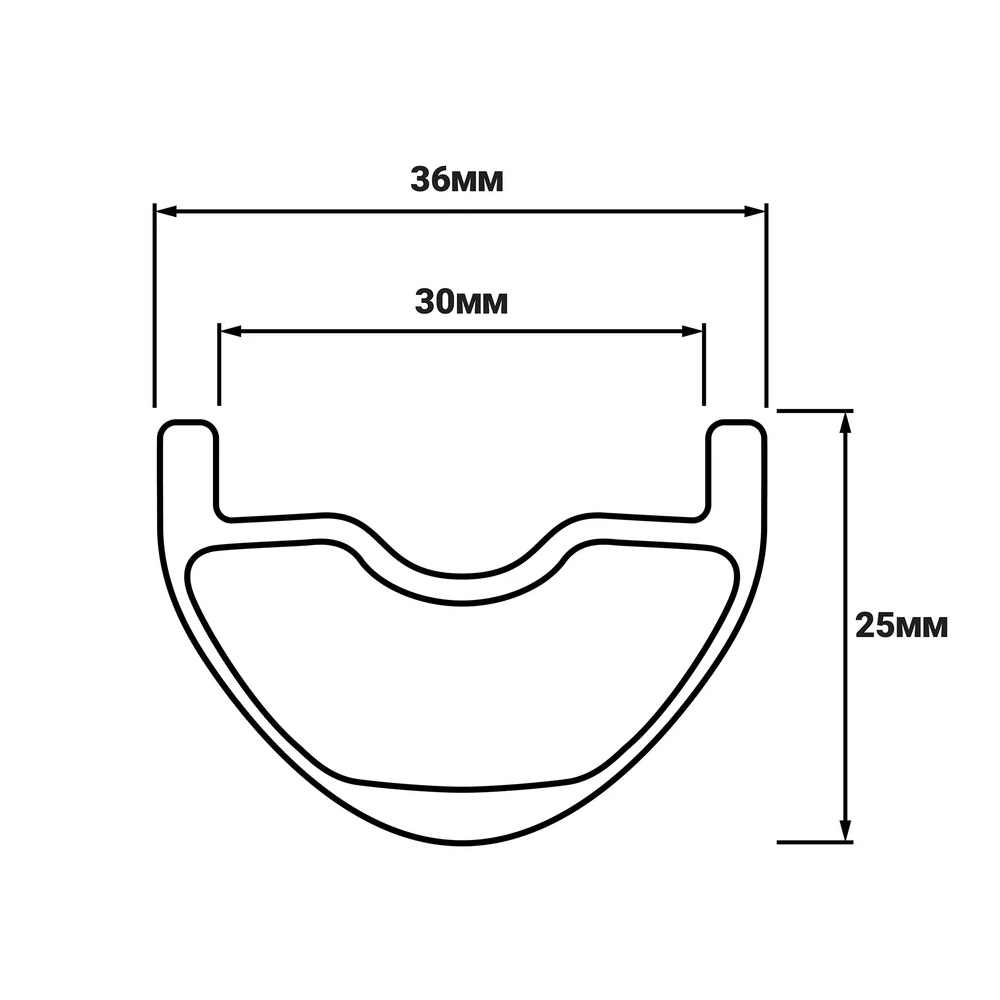 - 30mm internal rim width, 36mm external width, and 25mm depth (see cross-section image)